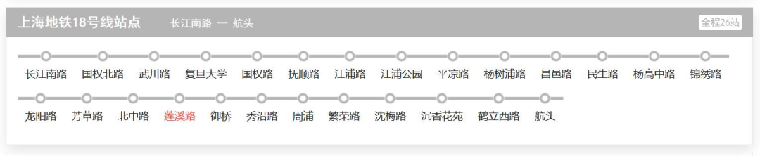 上海地铁18号线一期工程全长36.8千米,共设26座车站,全部为地下车站。